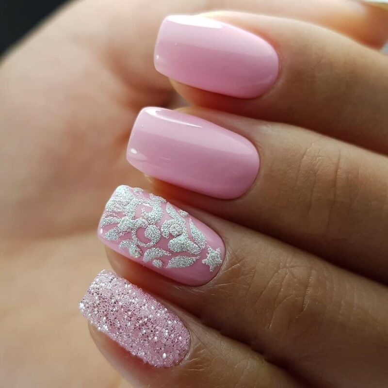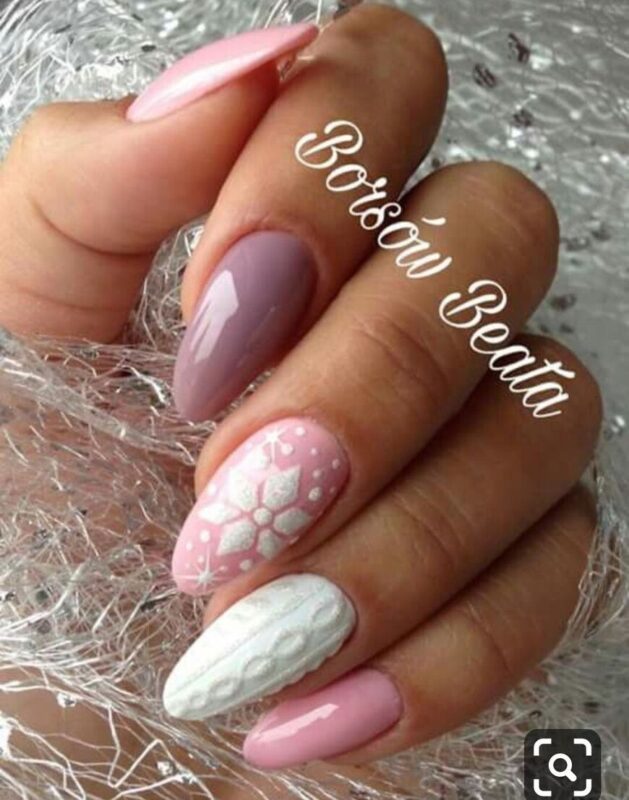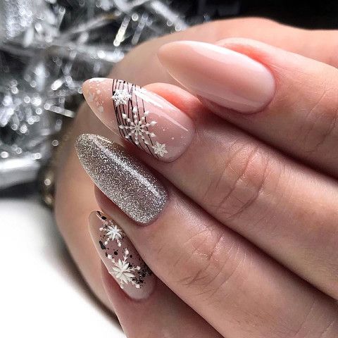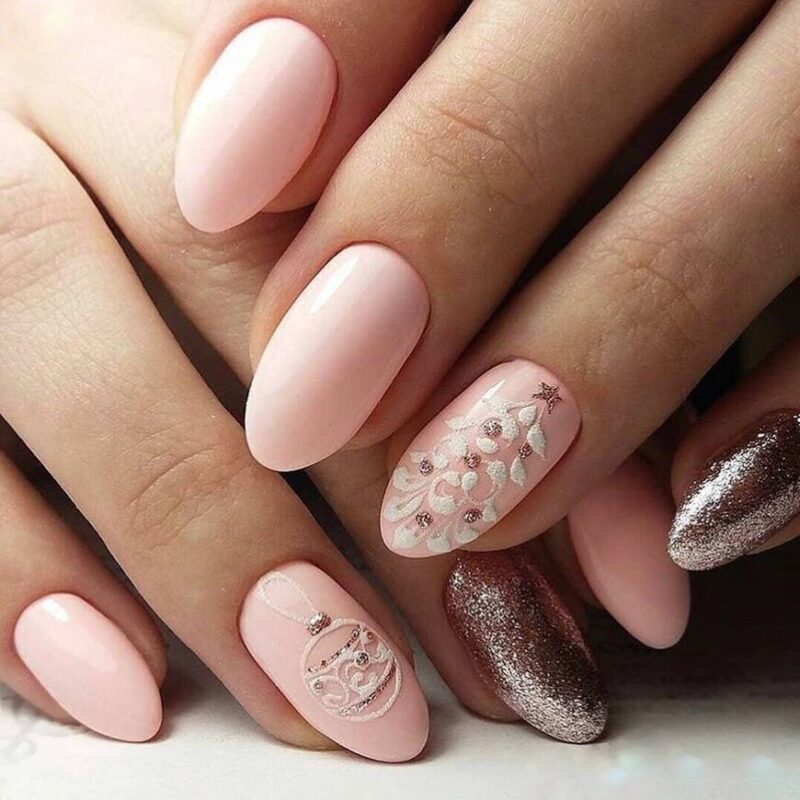 Если вам нравится нежный дизайн, стоит отдать предпочтение розовому или сиреневому лаку. Также в моде белый маникюр. Он лучше всего смотрится в сочетании с серебристыми элементами декора. Не стоит забывать и про бежевый лак — это классика, которая всегда актуальна. Такой маникюр можно сделать как на Новый год, так и для посещения серьезных мероприятий.