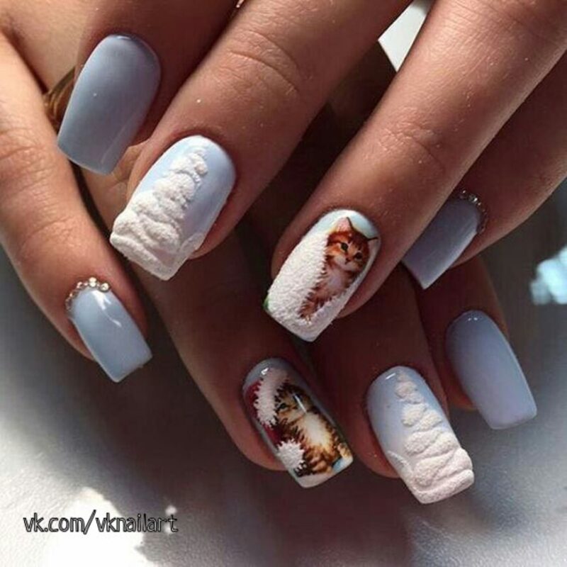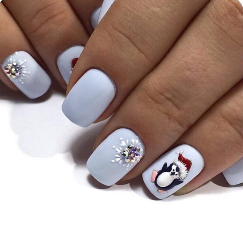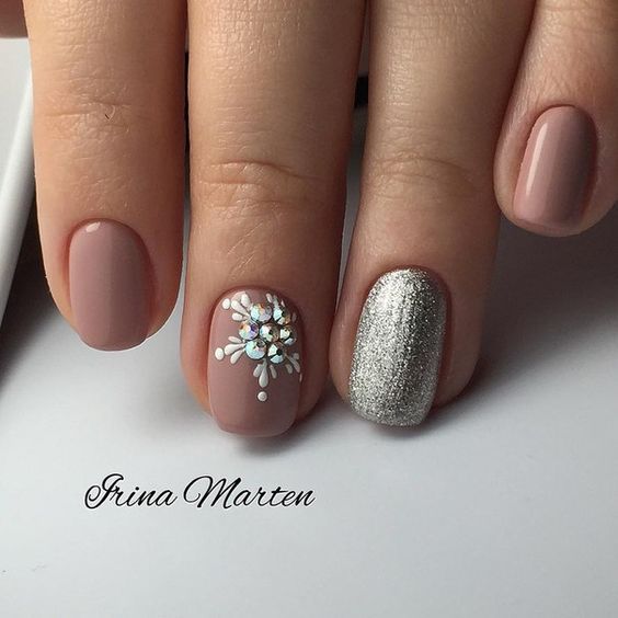 В этом праздничном Новогоднем сезоне, минималистичный дизайн прекрасно впишется в любого цвета Новогодний наряд. Очень стильно и легко будут смотреться пастельные цвета с небольшими акцентами в виде рисунка снежинки, нескольких аккуратных страз или каплей блесток.