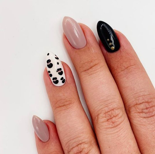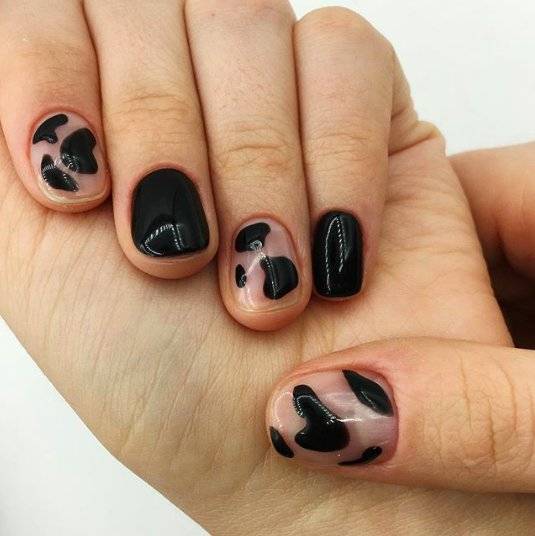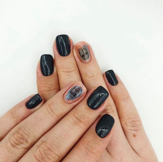 По восточному календарю 2023 — год Черного Водяного Кролика, поэтому черный цвет займет первое место в списке актуальных оттенков. Он красиво сочетается с блестками, камифубуки, пайетками и стразами. На длинных ногтях круто будут смотреться различные тематические наклейки большого размера. Любительницы коротких ногтей могут добавить маленькие рисунки или незамысловатые узоры.