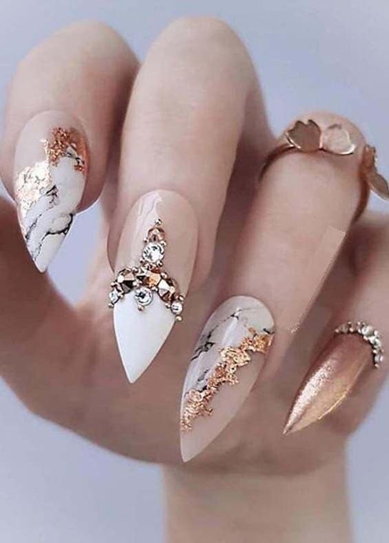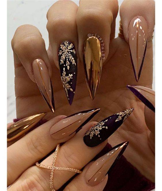 Подбирая зимний дизайн ногтей, обратите внимание на маникюр с эффектом металлик или “железные ногти”. Когда то металлические ногти, особенно под золото и серебро, были невероятно популярны, их хотели носить все, и это время снова возвращается, но в новой интерпретации