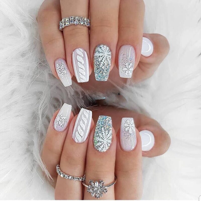 Белый новогодний маникюр 2021