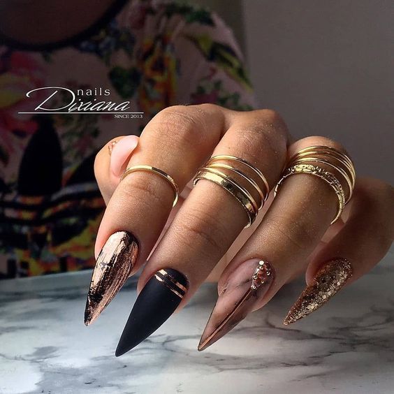 В этом сезоне, можно дать волю своей любви к всему блестящему и оторваться на полную катушку. Ведь даже символ года нам об этом говорит, своими яркими тигристыми полосками. Поэтому, девочки, в этом году не сдерживаемся! И добавляем на свои ноготки столько блесток и страз, сколько наша душа пожелает.