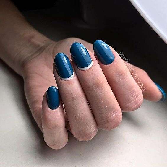 Не менее популярным в новом зимнем сезоне будет лунный дизайн ногтей или обратный френч.