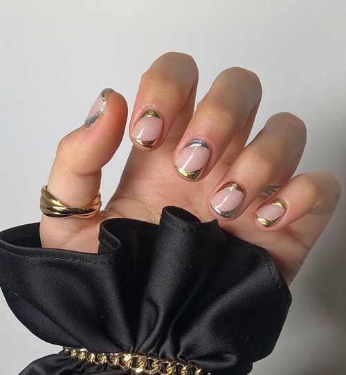 Эффектно будет смотреться френч в стиле металлик. Причём, как классический, так и волнистый или в виде линий.