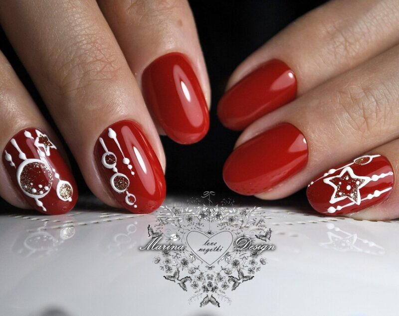 Новогодний маникюр на короткие ногти