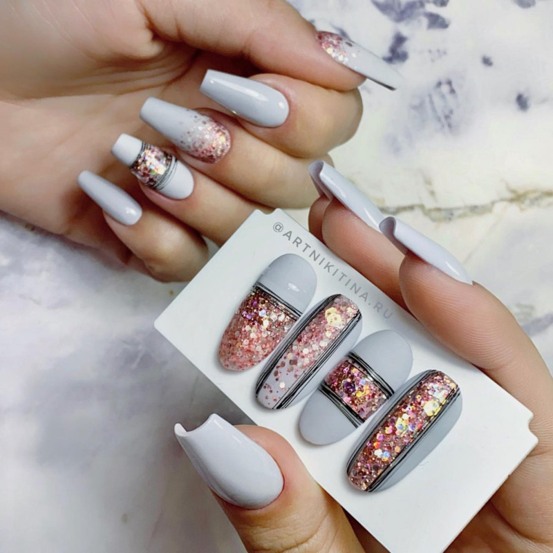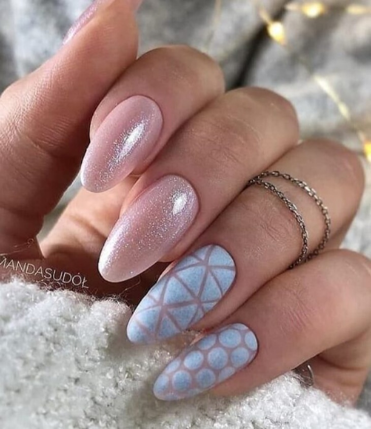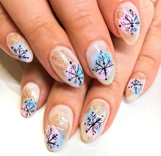 Обязательно добавьте к зимнему маникюру 2020-2021 немного блесток или камифубуки, в этот период это просто необходимо, чтобы создать для себя хорошее настроение. Не нужно покрывать все ногти, сделайте акцент в виде полоски, красивого узора или покройте один ноготок. Есть бесчисленное множество способов, как вы можете экспериментировать с блеском и нюдовыми оттенками лаков.