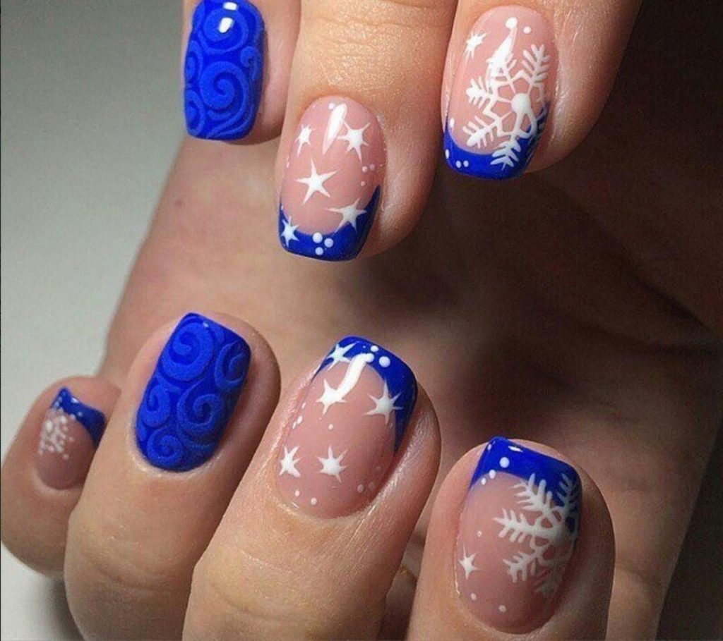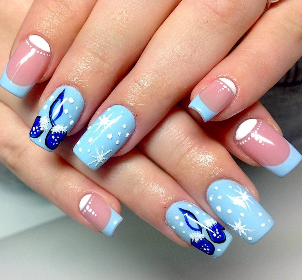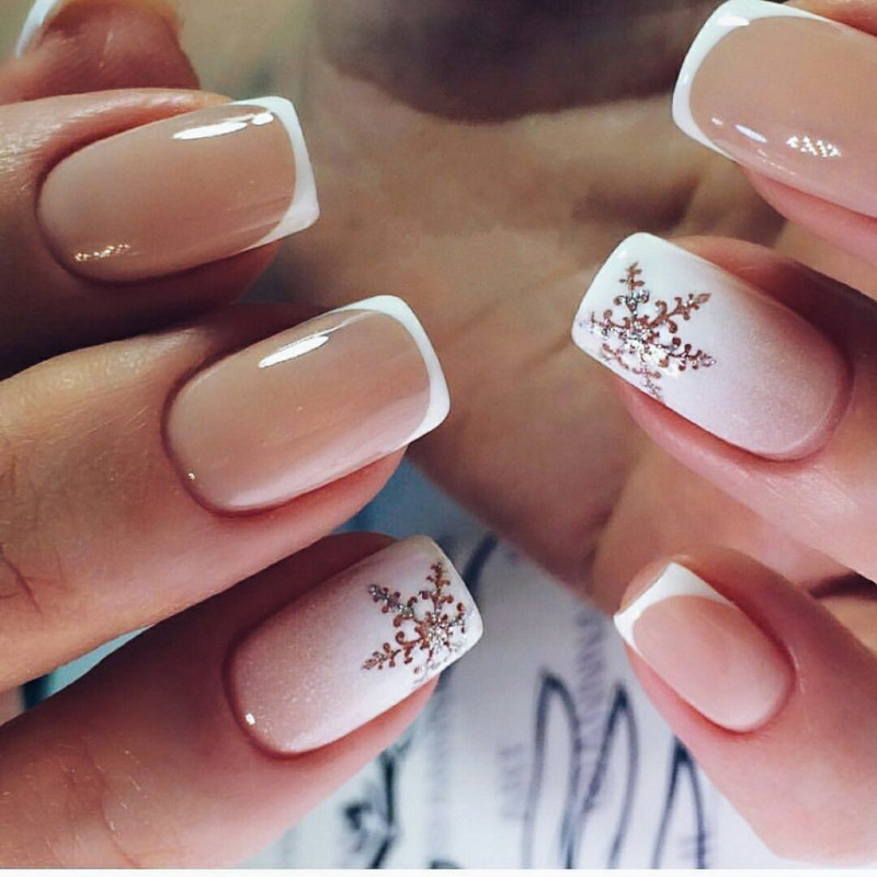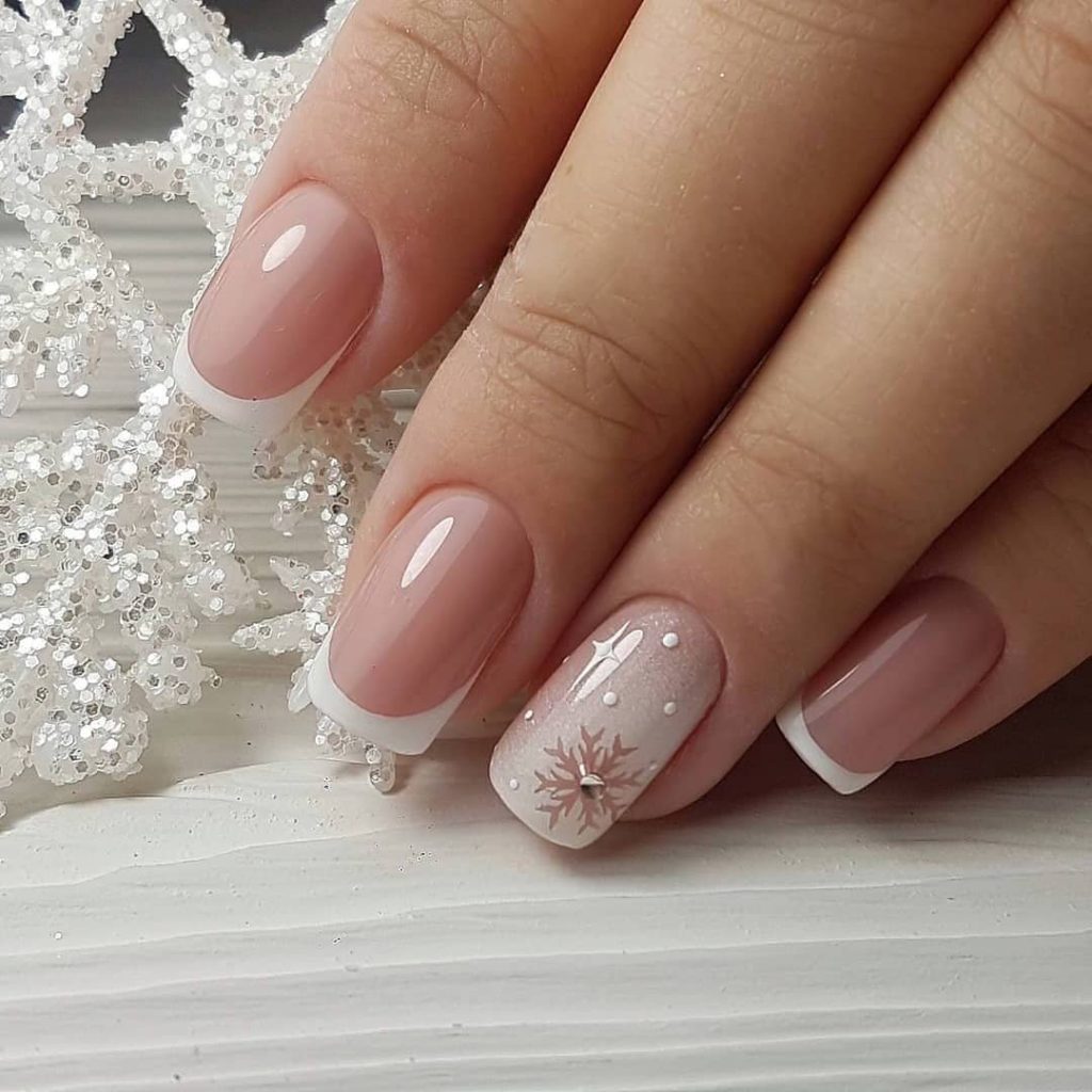 При этом френч размещается на большинстве ногтей, а на среднем и безымянном пальцах используется сложный рисунок. Новогодние тренды 2023 в натуральном маникюре будут такими: