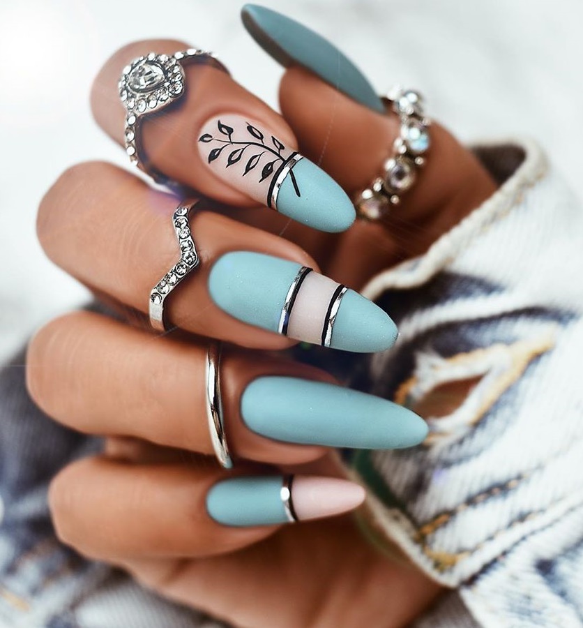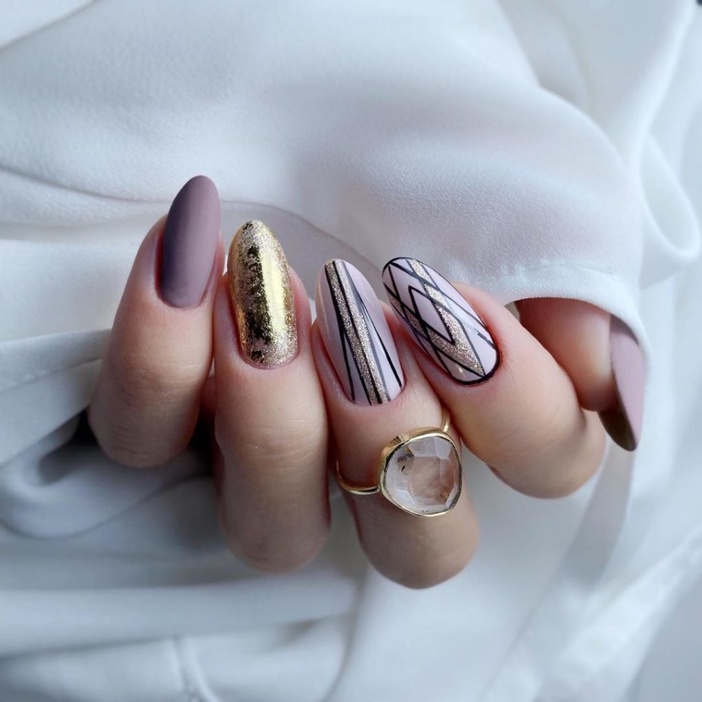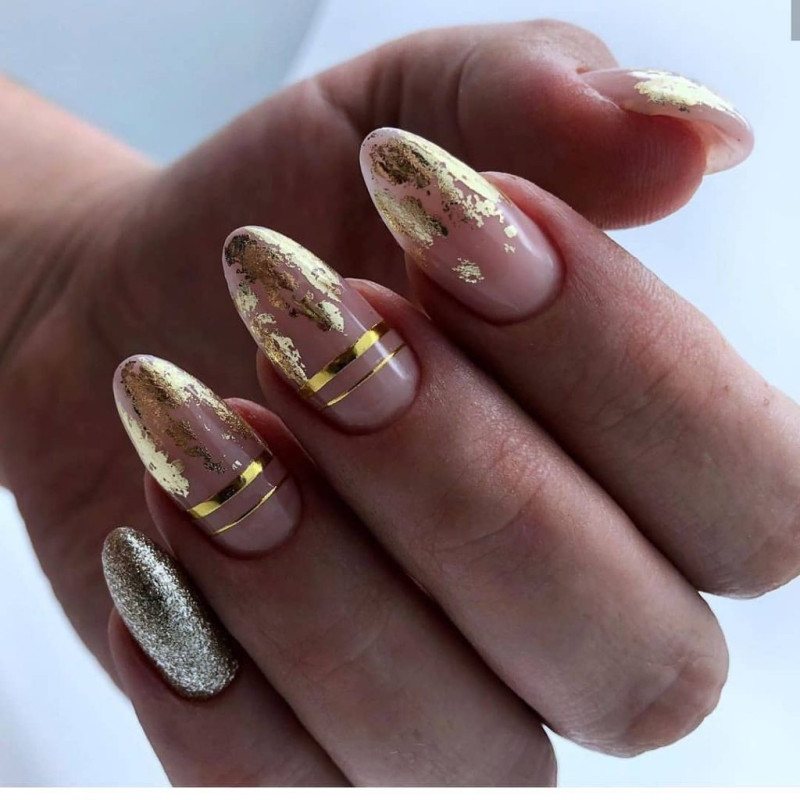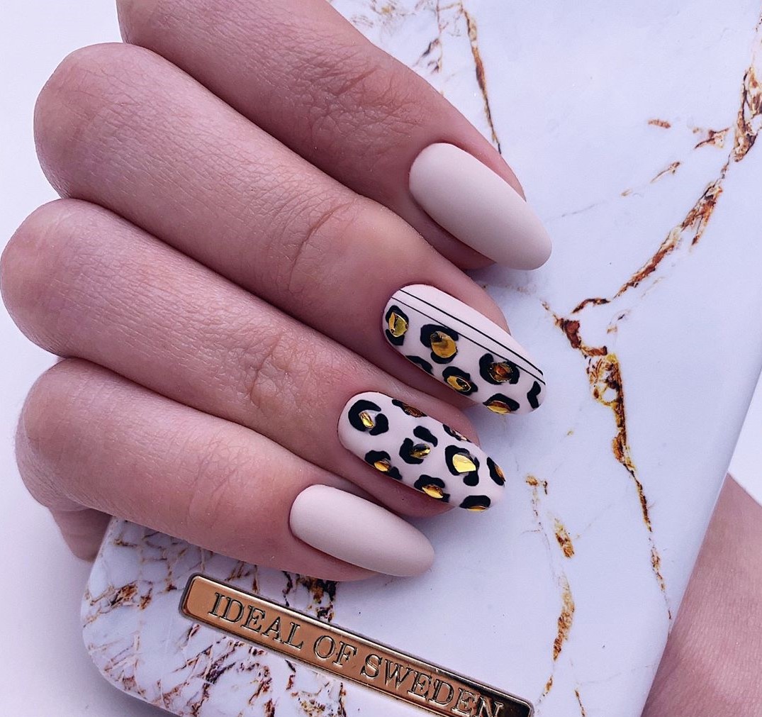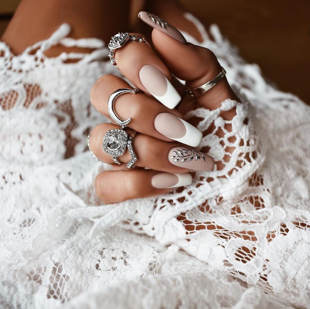 Обнаженные нюдовые цвета хорошо сочетаются с рисунками, стразами и различными дизайнами ногтей. Вы можете разнообразить такой маникюр с помощью золотой или серебряной ленты, наклеек в минималистском стиле, блесток, стильных камушек.