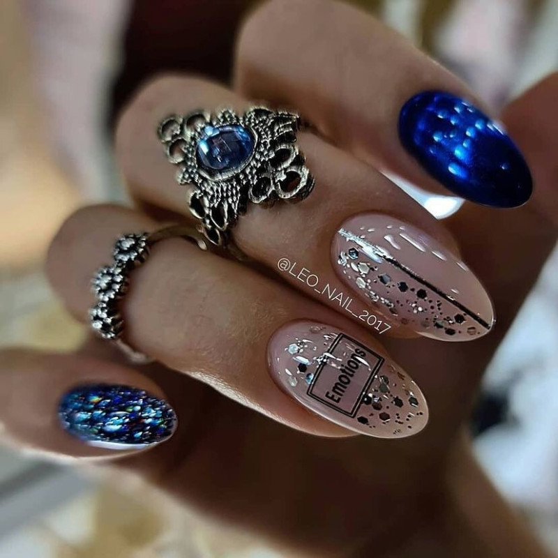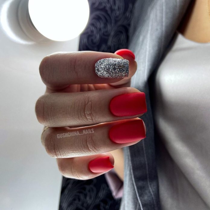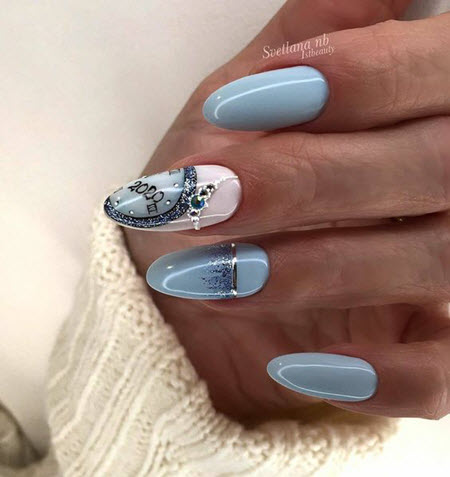 Также, довольно популярный тренд этого Новогоднего сезона — это серебро на ногтях. Причем, тоже как в чистом виде, так и в сочетании с разными цветами гель-лаков. И чем больше серебряного цвета на ваших ноготках, тем более крутым и модным будет считаться ваш дизайн. Ноготки полностью стального блестящего цвета будут выглядеть очень эффектно, ярко и точно выделят вас из толпы.