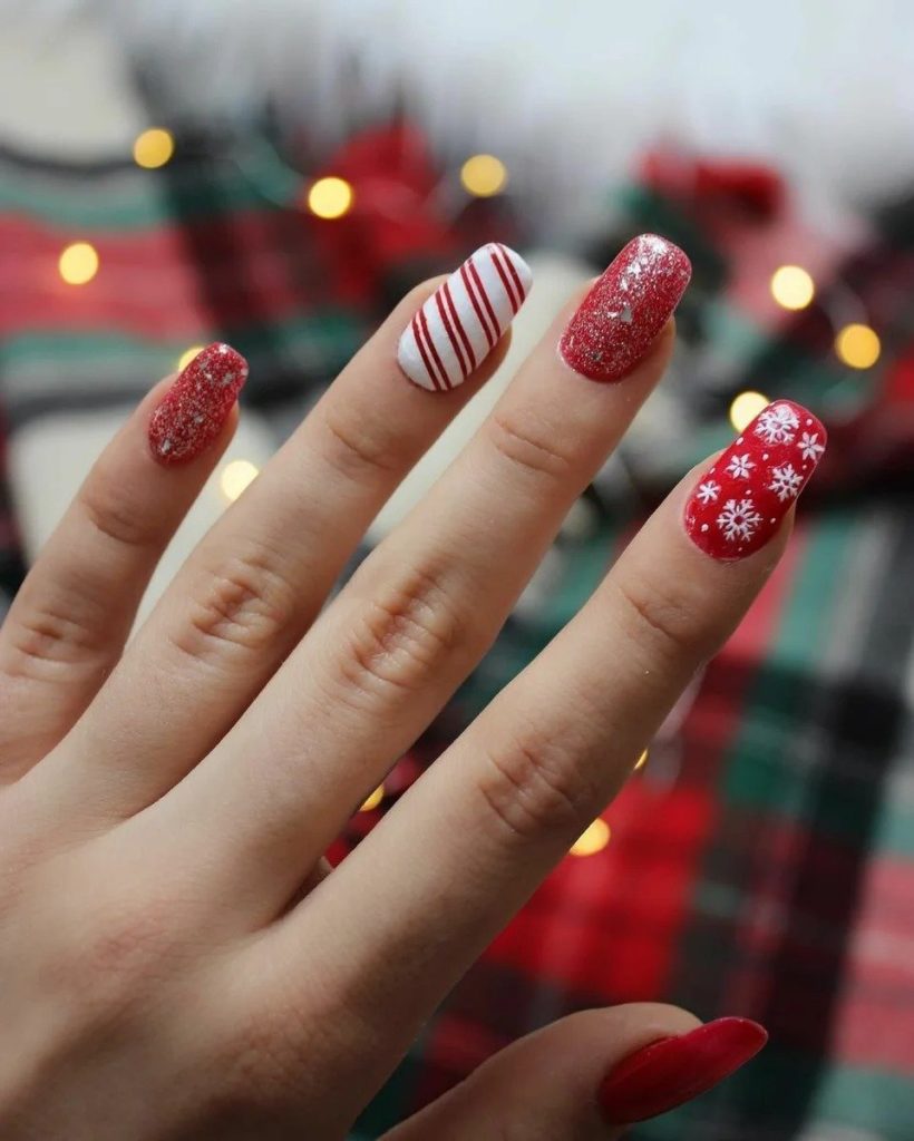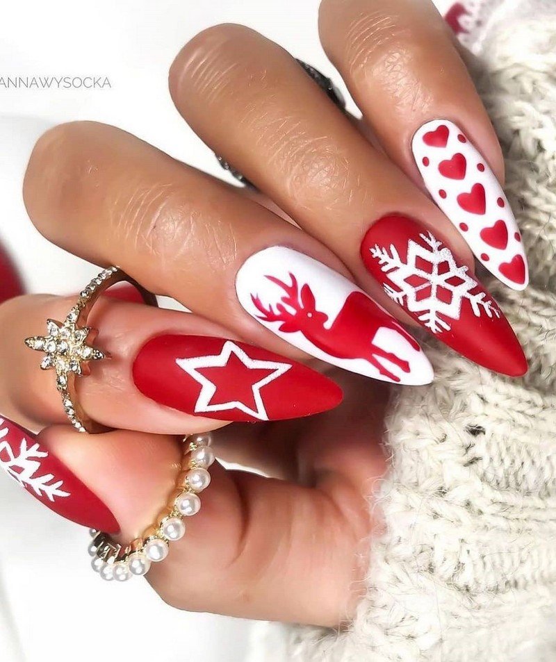 В этом сезоне в моде следующие цвета для новогоднего маникюра: красный, зеленый, все золотые и блестящие оттенки, светло-голубой, который притягивает цвет льда. Предпочтительными видами дизайна являются ель, шарики, снежные хлопья. Те, кто любит необычные рисунки, также могут найти вдохновение на этой странице. Помимо классических идей для вашего рождественского маникюра, мы представляем оригинальные идеи.