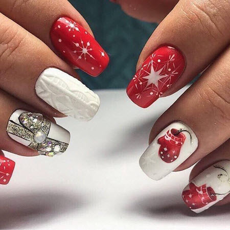 Чтобы определиться с выбором подходящего новогоднего маникюра, стоит рассмотреть самые симпатичные и популярные варианты рисунков на ногтях: