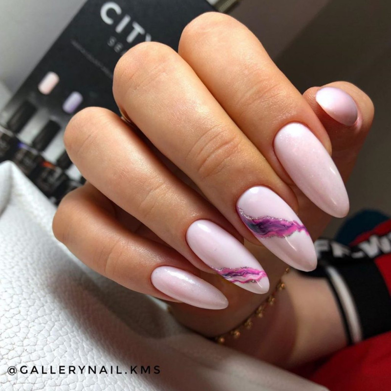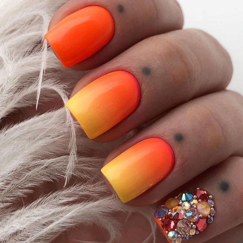 Если вы выбрали однотонный маникюр, то можете сделать небольшое украшение на безымянном пальце. В моде одинаковые ногти по длине и форме, покрытые тем же лаком, но в качестве яркого акцента делается градиент. Он освежает маникюр и помогает сделать его ярче и красивее.