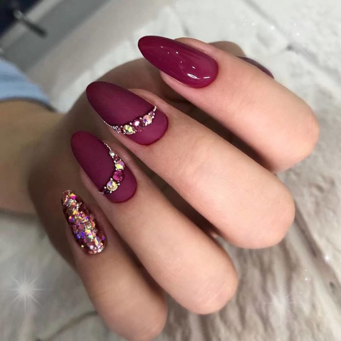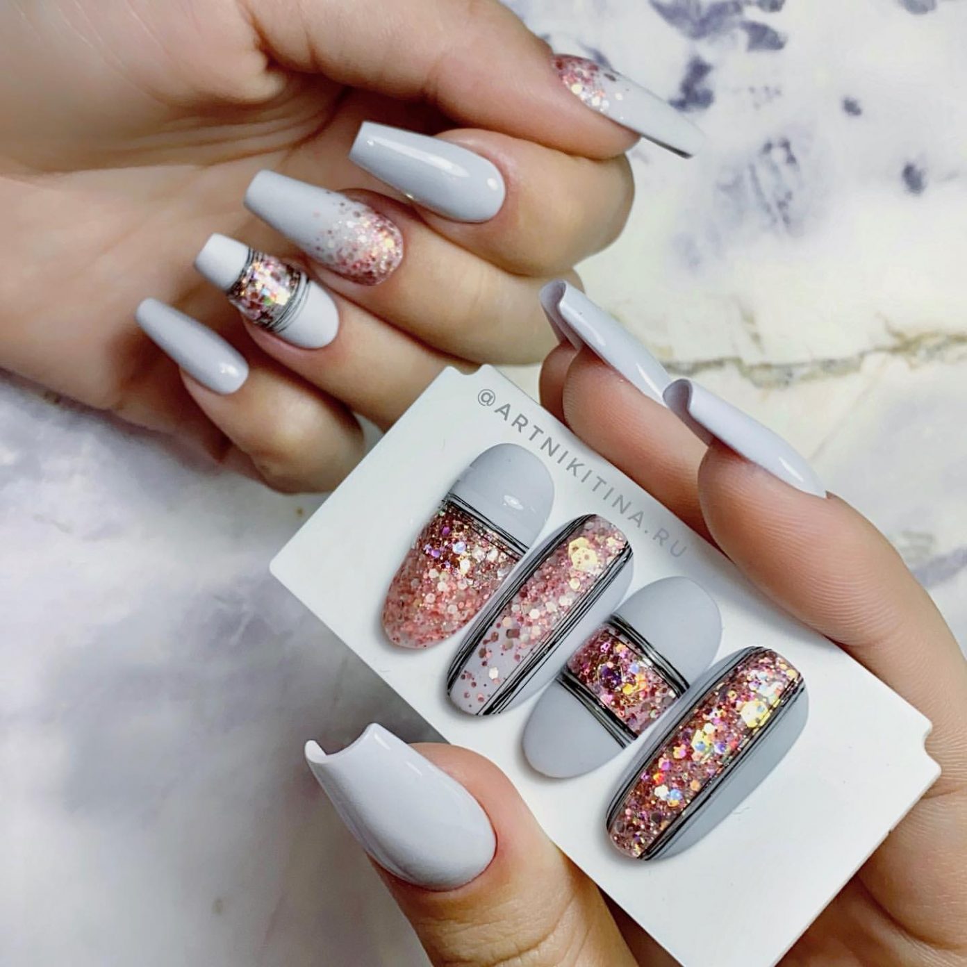 Они могут быть как глянцевые, так и матовые, как будто припылённые. Благородно будут смотреться тёмные оттенки с микро блёстками.