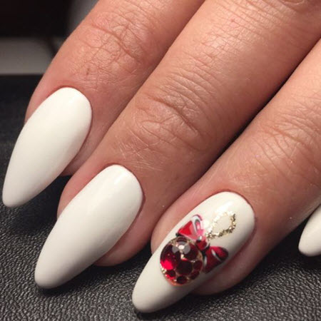 Какую длину и форму ногтей выбрать для модного новогоднего маникюра? Подойдет любая. Но нужно учитывать, что выбранный дизайн может просто не уместиться на небольшой длине пластины. Или он получится слишком мелким и незаметным. Мастера нейл-арта рекомендуют продумывать новогодний дизайн заранее. Возможно придется немного отрастить длину или сделать наращивание. Для всех этих манипуляций необходимо время.