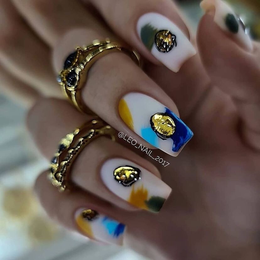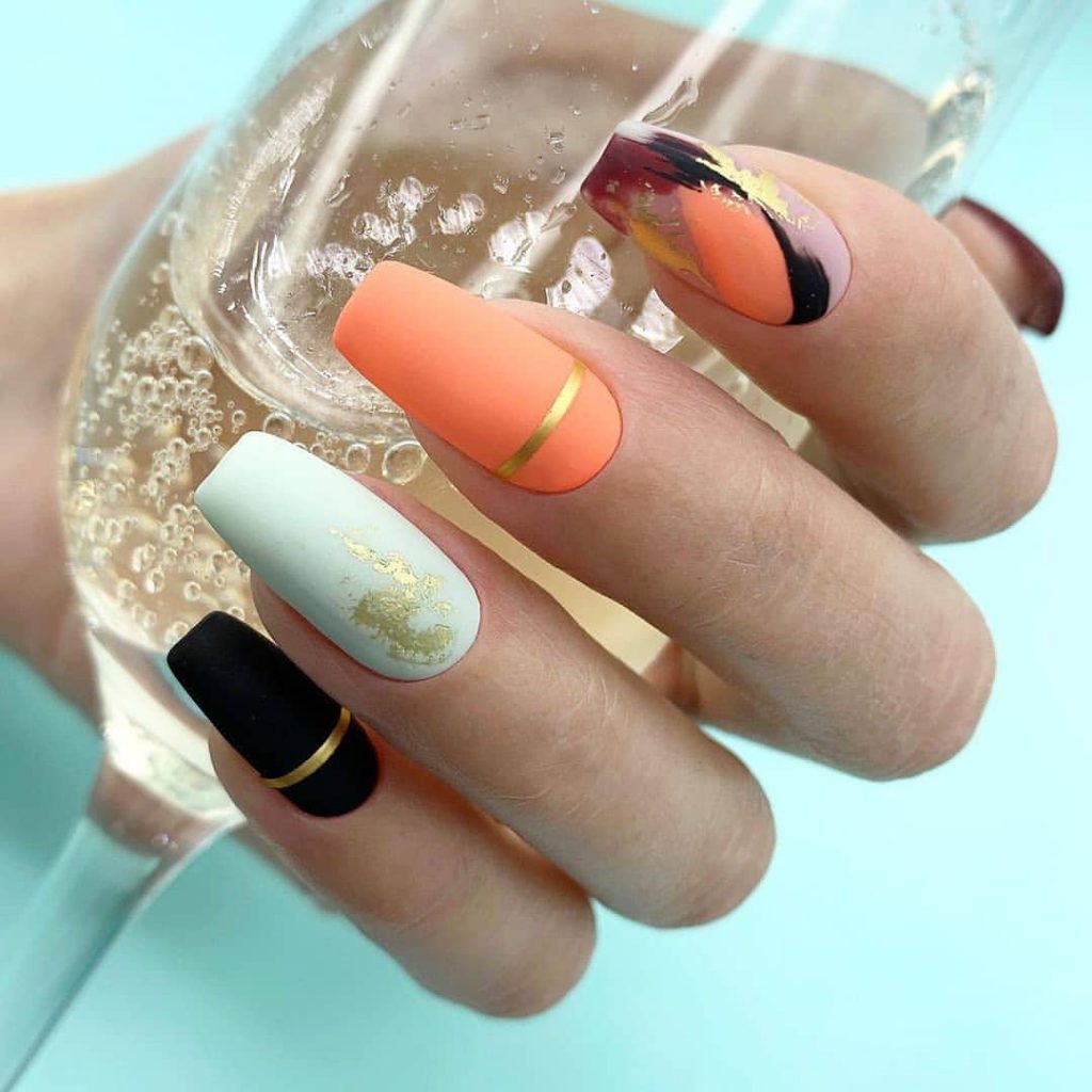 Эти цвета можно использовать в маникюре как в чистом виде, так и в комбинированном. Например, сочетать оранжевый с белым и с черным, синий с черным и с серебром, серый с серебром, белый с серым, оранжевый с золотистым и с черным, и так далее, на сколько хватит вашей фантазии.