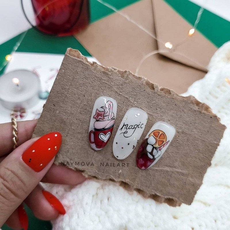 Новогодний сезон — это сезон горячих напитков, красивых заснеженных пейзажей, вечеринок с друзьями и дома в кругу семьи. Новогодний маникюр тоже нашел свое место во всей этой праздничной суете.
