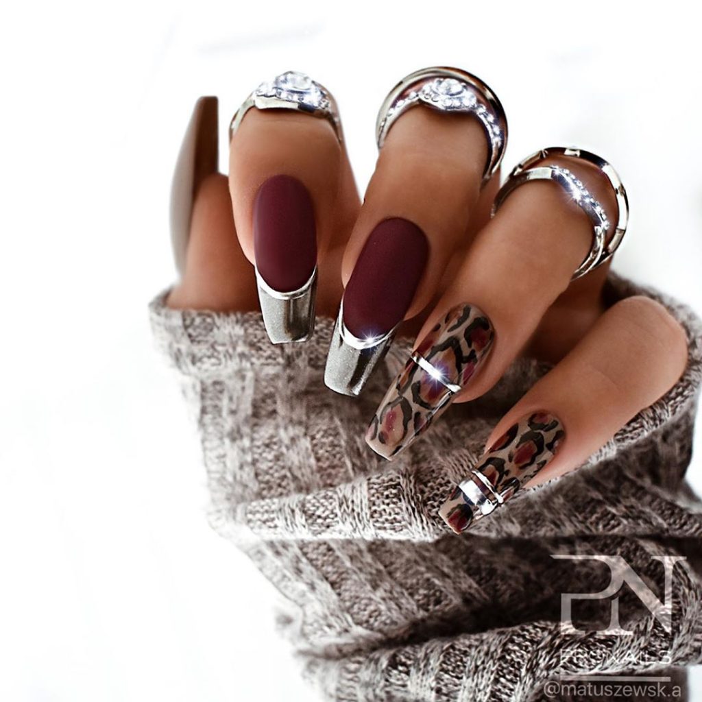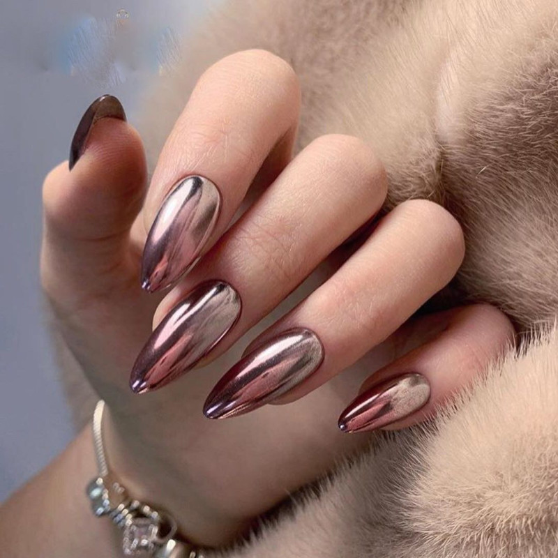 Подбирая зимний дизайн ногтей, обратите внимание на маникюр с эффектом металлик или “железные ногти”. Когда то металлические ногти, особенно под золото и серебро, были невероятно популярны, их хотели носить все, и это время снова возвращается, но в новой интерпретации