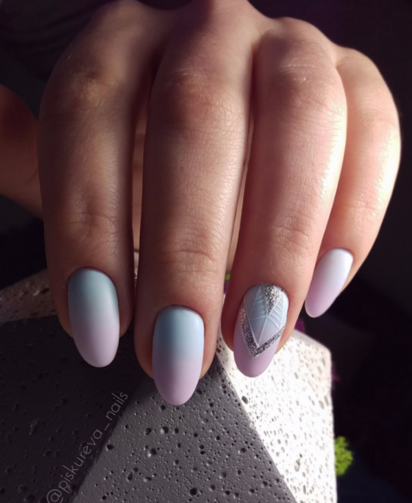 - Градиенты, в том числе с эффектом инея, снега на ногтях, переходы от глянца к матовой фактуре.