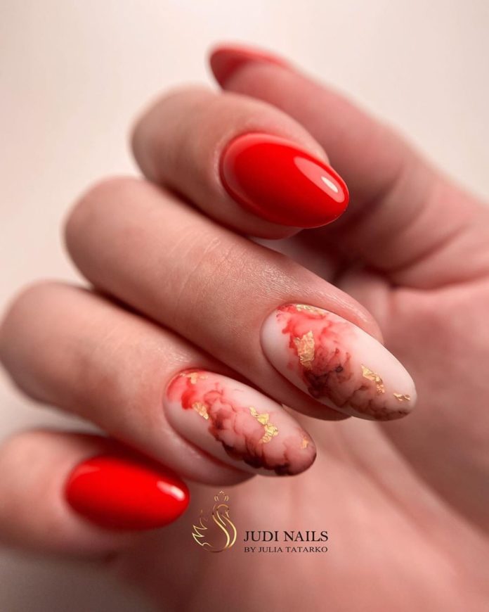 Если вы будете красить ноготки контрастными оттенками, то запомните, что главным правилом в этом случае будет соответствие цвета ноготков и ваших губ. Например, лак для ноготков и помада для губ должны быть красными.