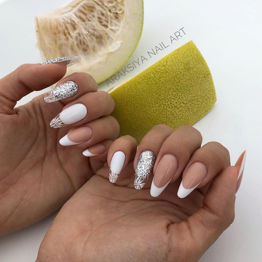 Они давно вызывают только одни ассоциации: «куриная лапка», «когти орлицы» или «старой ведьмы», и безнадежно отдают «колхозом не заасфальтированным». Конечно, если новогодний образ именно такой, то ничего страшного, но для повседневной носки такие ногти уже не подходят. Сейчас в тренде короткая и средняя длина. Опил: квадрат, овал, скво-овал, миндаль.