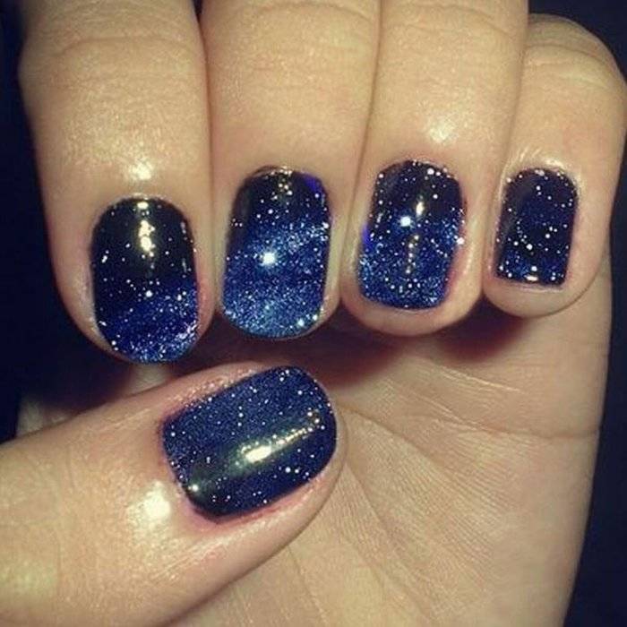 Ночное небо — это тематический цветовой тренд зимнего маникюра. Используя глубокие темно-синие оттенки, с золотыми и серебряными звездами, можно создать захватывающий эффект, который напоминает зимнюю ночь с небом, усыпанным звездами.