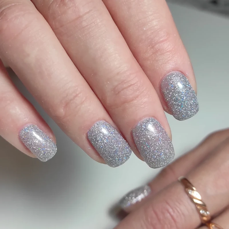 Нежный новогодний маникюр на коротких ногтях придает образу ухоженности и элегантности