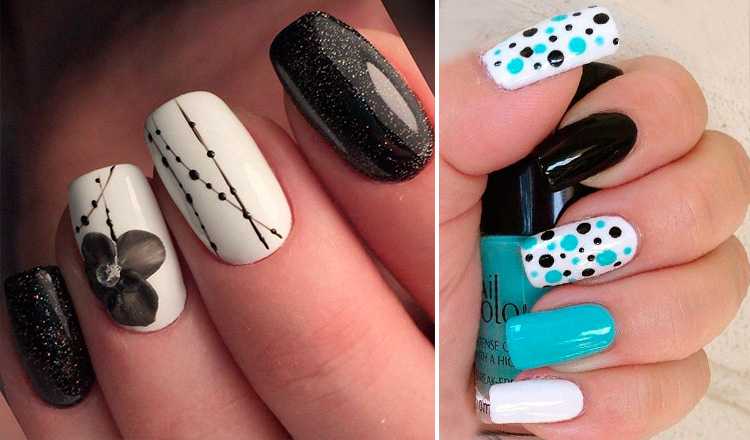 Эти цвета можно использовать в маникюре как в чистом, так и в комбинированном виде. Например, сочетать черный с красным и белым, черный с золотым, синий с белым и с черным, красный с белым и золотым, серый с серебром, белый с серым, голубой с золотистым и с черным, и так далее, на сколько хватит вашей фантазии.