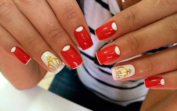 Красный с белым дизайн ногтей