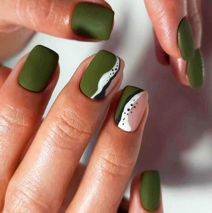 Зеленый охватывает все виды красивого дизайна: абстракцию, живопись, нейл-арт. Для декора можно рисовать цветы, природе, чтобы создать целую художественную композицию.