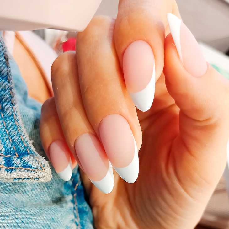Белые нюдовые ногти смотрятся очень интересно, хотя сочетаются обычные цвета. Маникюр подходит не только для делового стиля, но и для веселой атмосферы. Молочно-белые нюды являются классикой в мире моды.