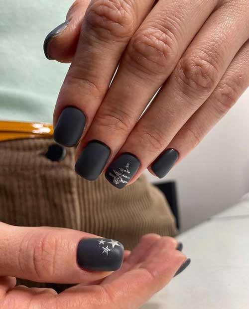 Волшебные нотки в модный новогодний дизайн ноготков привнесут матовый и бархатный эффект. В новых дизайнах предложен матовый маникюр на Новый год с декором стразами и блестками, как крупными, так и очень деликатными по всей поверхности матового покрытия. Модным будет сочетание матово-глянцевого эффекта в новогоднем маникюре с рисунками и различными элементами декора.