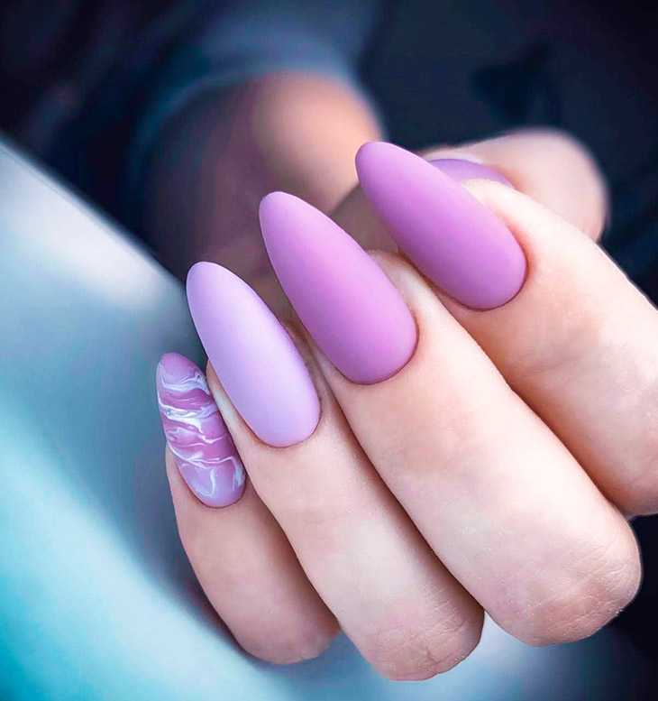 Ярко-красный и голубой. Сочетание этих цветов дает красивый фиолетовый оттенок. Это самый темный цвет во всей палитре. Фиолетовый нюдовый маникюр – лучшее решение для девушек, которые хотят испытать новое настроения и вдохновения.