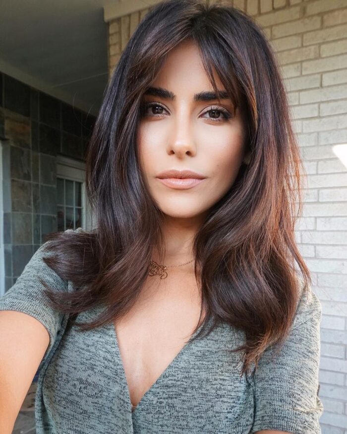 Учитывая модные тенденции в 2024, с челкой шторкой красиво смотрятся длинные стрижки. Образ будет выглядеть женственно, а особенно эффектна челка-занавес на прямых волосах. Она имеет несколько преимуществ: