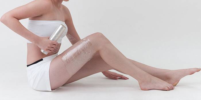 возьмите специальную пленку или обычную пищевую и оберните ею ноги – чем больше слоев, тем эффективнее будет процедура;