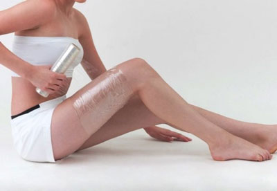 возьмите специальную пленку или обычную пищевую и оберните ею ноги – чем больше слоев, тем эффективнее будет процедура;