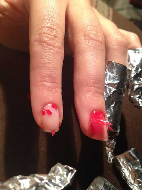 Ответ: Чтобы удалить покрытие в домашних условиях, обычный диск из ваты делят на части. Для пропитки применяют такие вещества, как ацетон, изопропиловый спирт или средство для снятия лака. Крепят на фаланги пальцев с помощью пищевой фольги или полиэтиленового пакета. Стараются избегать попадания растворителя на кожу. После выдержки в течение 10-20 минут удаляют остатки покрытия палочками.