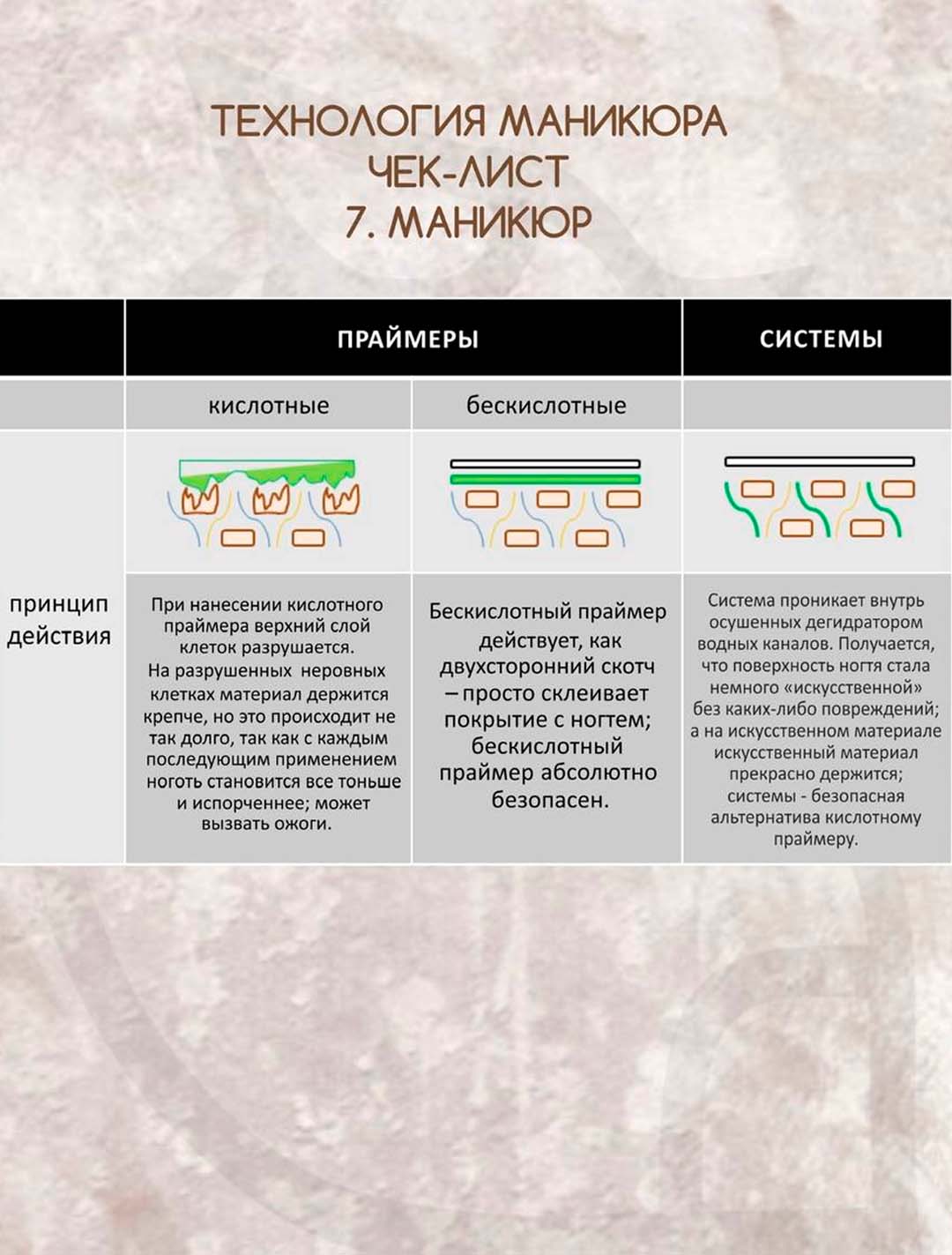 Системы — это совершенно другой вид адгезивных материалов. Они действуют иначе, не как праймер. Система имеет настолько мелкую молекулу, что способна проникать между клетками ногтя