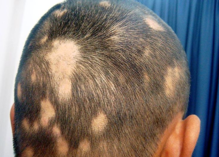 Гнездная алопеция — этот тип алопеции считается аутоиммунным заболеванием, при котором лимфоциты атакуют здоровые клетки — в случае волосяных фолликулов подавляют или полностью останавливают рост волос. Гнездная алопеция характеризуется появлением голых областей с круглой формы на коже головы.