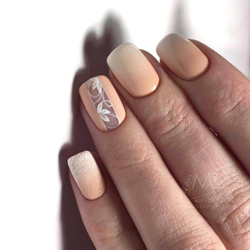 - Мягкий бежевый («телесный») маникюр. Естественность коротких ногтей резко стала популярной, все чаще используют телесные цвета.