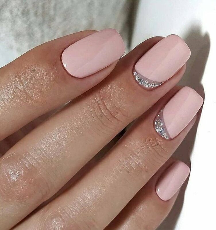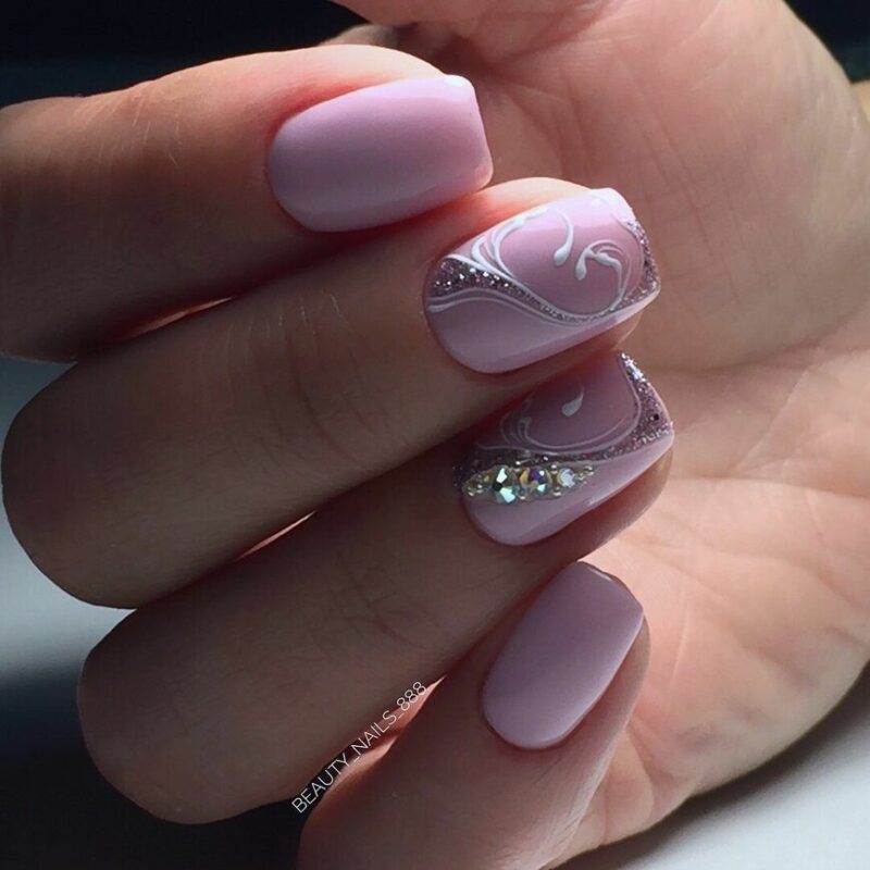 На очень короткие ногти оптимальным вариантом для маникюра будет использование нежных цветов, которые не будут привлекать к себе внимание, придавая рукам ухоженный вид. Чтобы удлинить очень короткие ногти, мастера нейл-дизайна часто используют блестящий декор – блестки, стразы, глиттерные и шиммерные лаки. В этом году нежный маникюр — универсальный