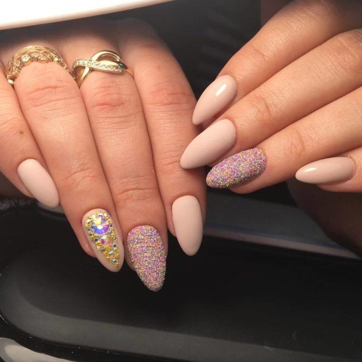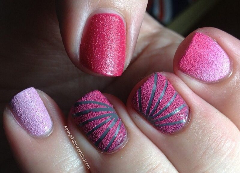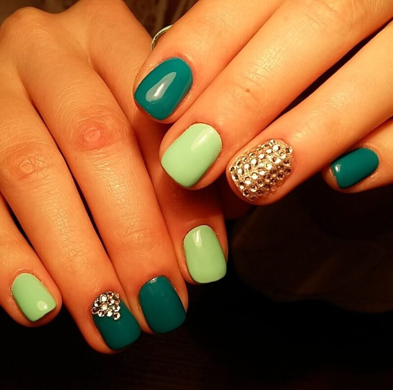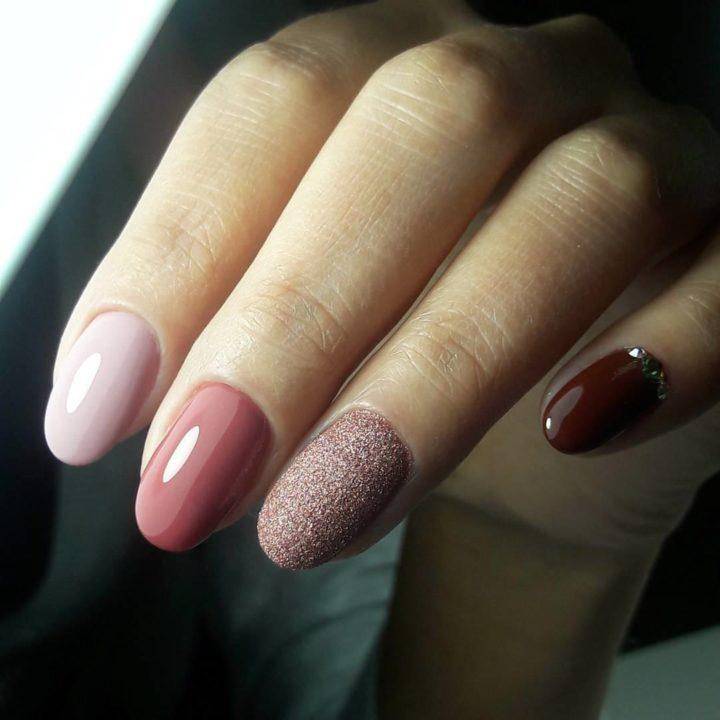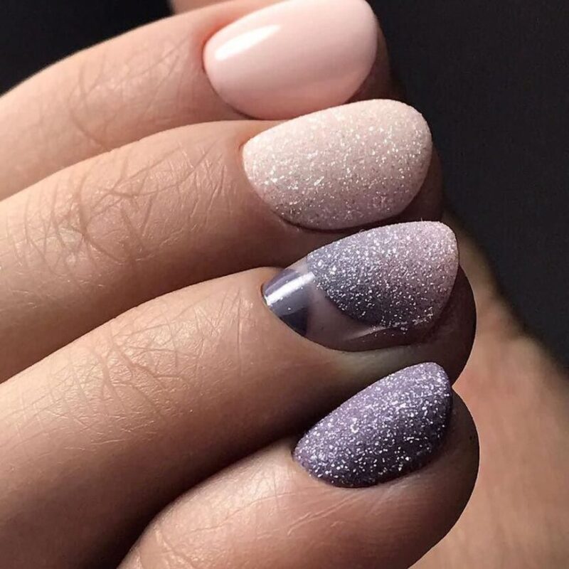 - Разные фактуры. Сейчас вы можете использовать на одном пальце матовый лак и блестки, глянец;