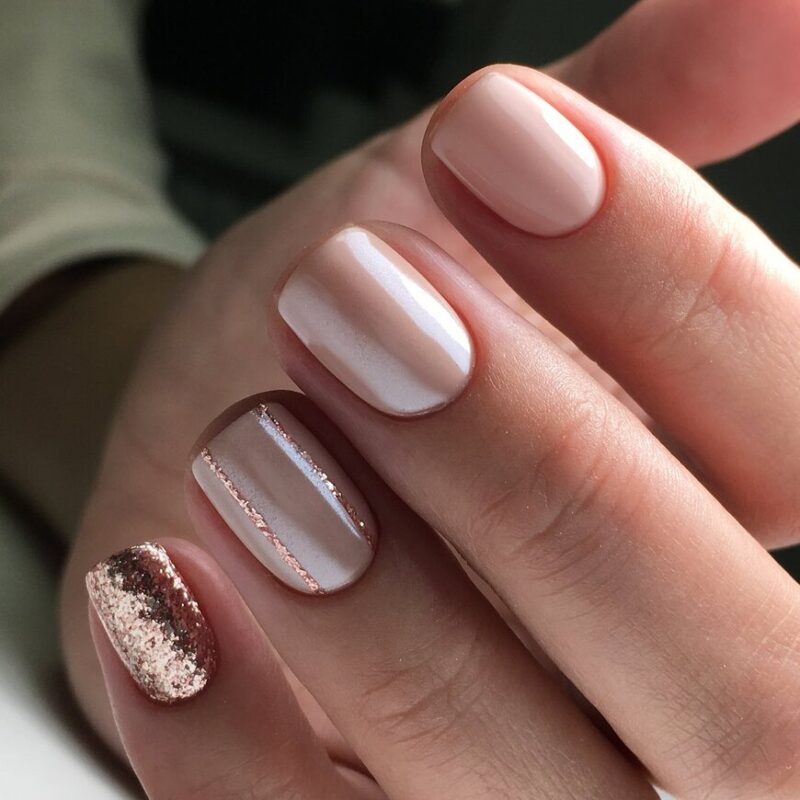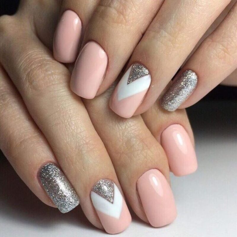 Минималистичные рисунки и вкрапления с серебром, золотом в сочетании с нюдом всегда универсальны. Они подходят как для носки в повседневной жизни, так и для создания вечерних образов.