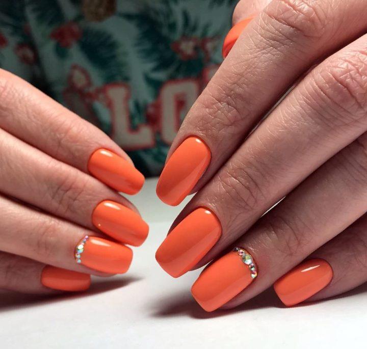 Яркий шеллак коротких ногтей подойдет молодым и активным девушкам, а еще тем, кто собирается на какое-то неформальное торжество.
