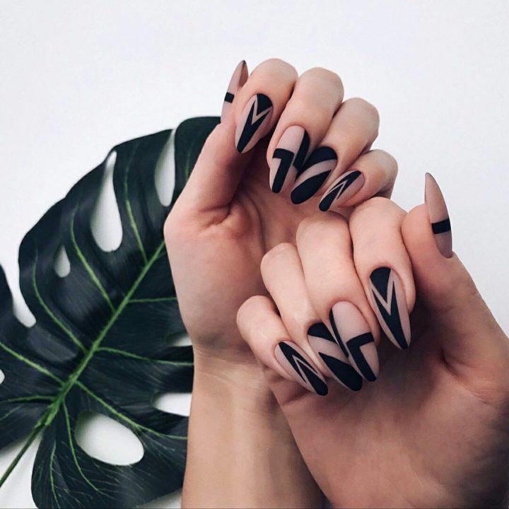 Геометрические узоры и линии на ногтях придают им стильный и современный вид. Это могут быть простые геометрические формы, такие как треугольники, полоски, точки, или более сложные узоры, создающие графический акцент на ногтях.