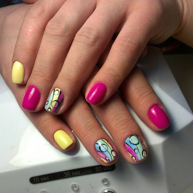 Яркий дизайн шеллак коротких ногтей и техника его выполнения