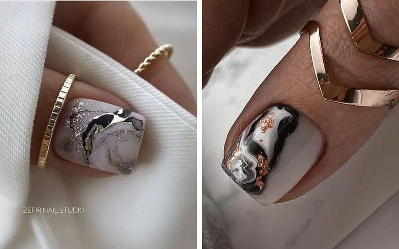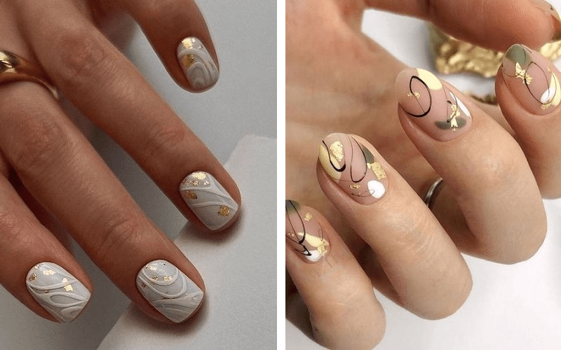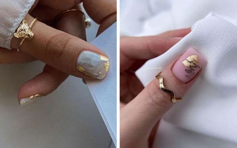 Небольшие кусочки золотой фольги будут красивым дополнением как к цветочным узорам, так и к мраморному дизайну