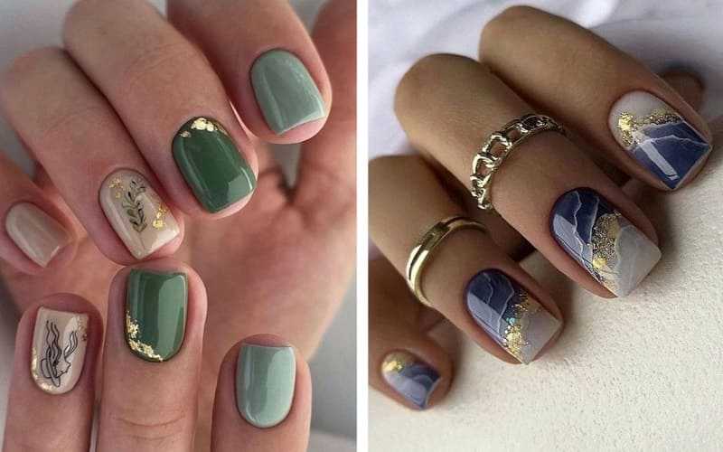 Фото: необычные красивые дизайны на коротких ногтях с золотой фольгой