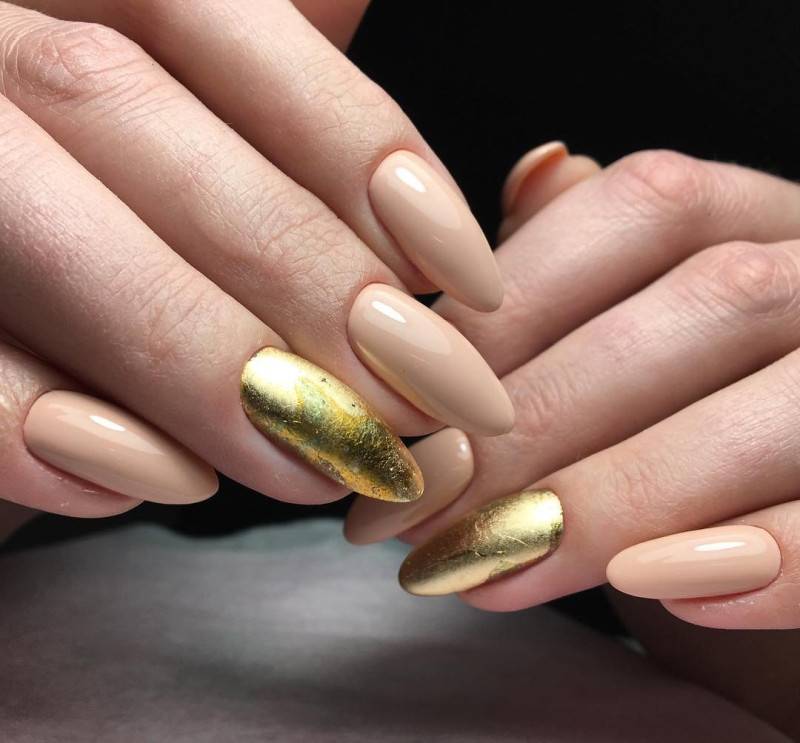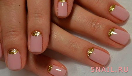 Маникюр с использованием лака золотого цвета