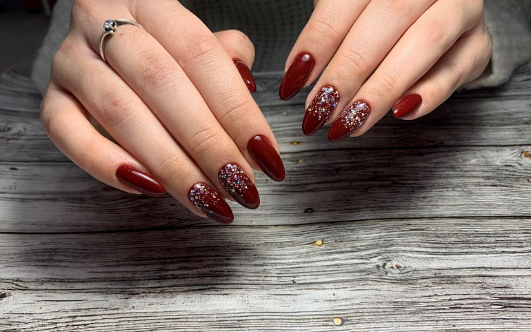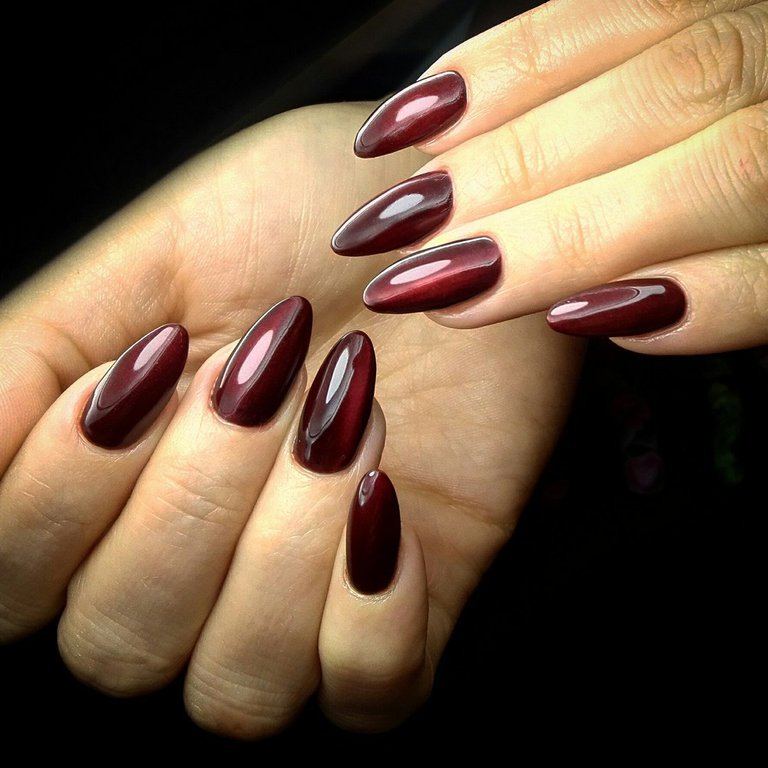 Если у вас нарощенные длинные ногти, предпочтение лучше отдавать более глубоким оттенкам красного.