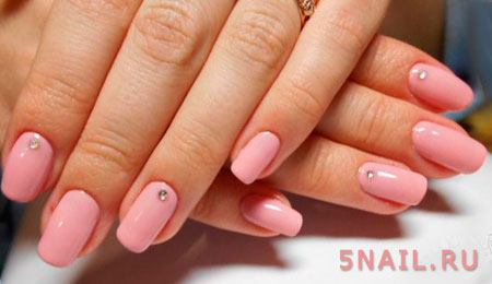 В качестве дополнения к маникюру можно нанести крупные блестки в тон или мелкие блестки или стразы. Использование шеллака или гель-лака для создания однотонного маникюра — достаточно хорошее решение, так как маникюр прослужит долго, а ногти будут выглядеть аккуратными.
